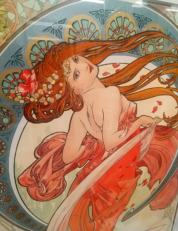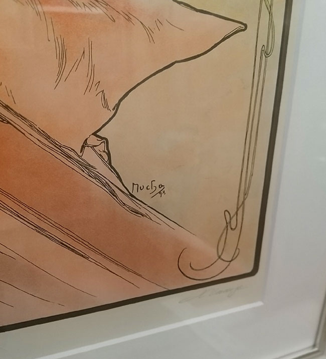 作品下部左にエディションナンバー、右に摺り師サイン、中央にミュシャ財団公認エンボス入り