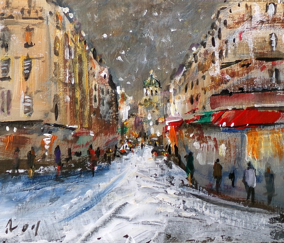 商品番号eurc30 作者名 パスカル(フランス) 作品名 雪のパリ 油彩画